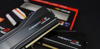More concretely, the memory kit used was a 2×64 GB kit with memory chips located on either side of the PCB. The kit was pushed to a maximum speed of 9400 MT/s on the motherboard. A word of warning: it’s more difficult to push high-capacity memory chips at high frequencies than more modest-capacity models.